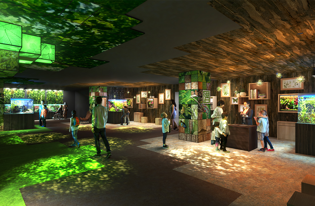 それぞれの舞台が繋がり、 多様な環境に暮らす生きものたちの 魅力を映し出しながら 当施設のテーマ「生命の舞台」を描き出しています。